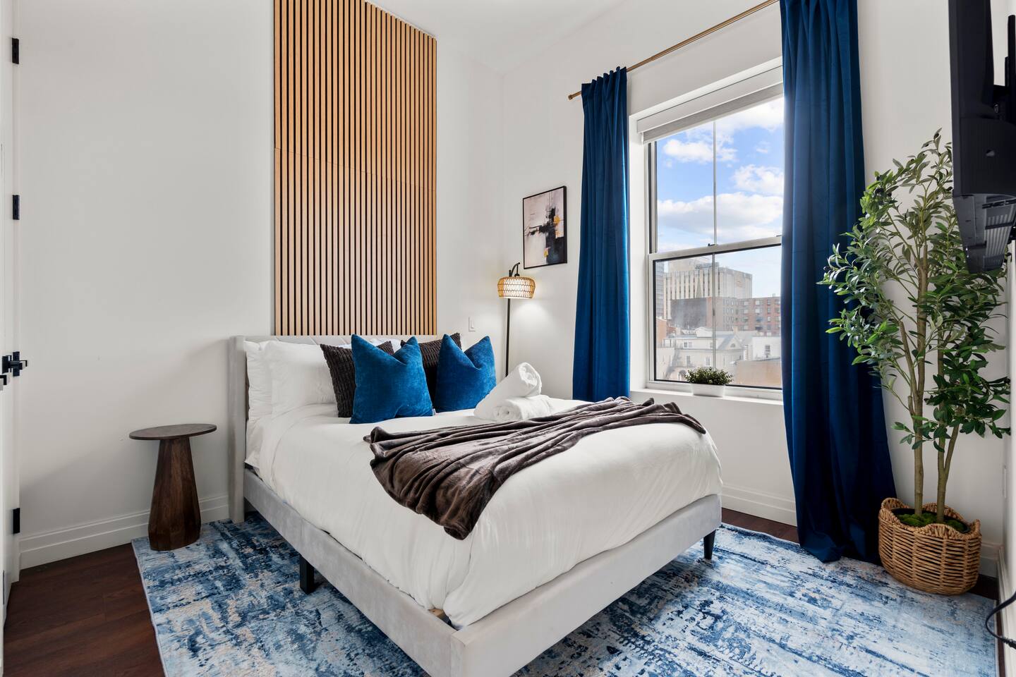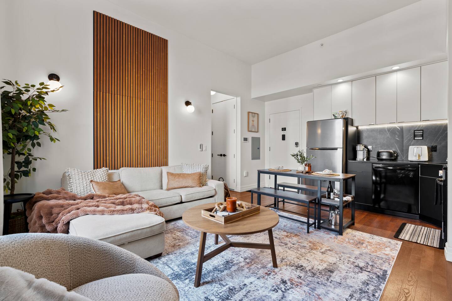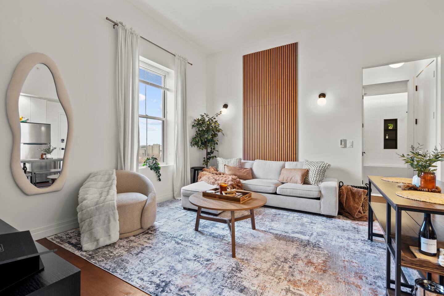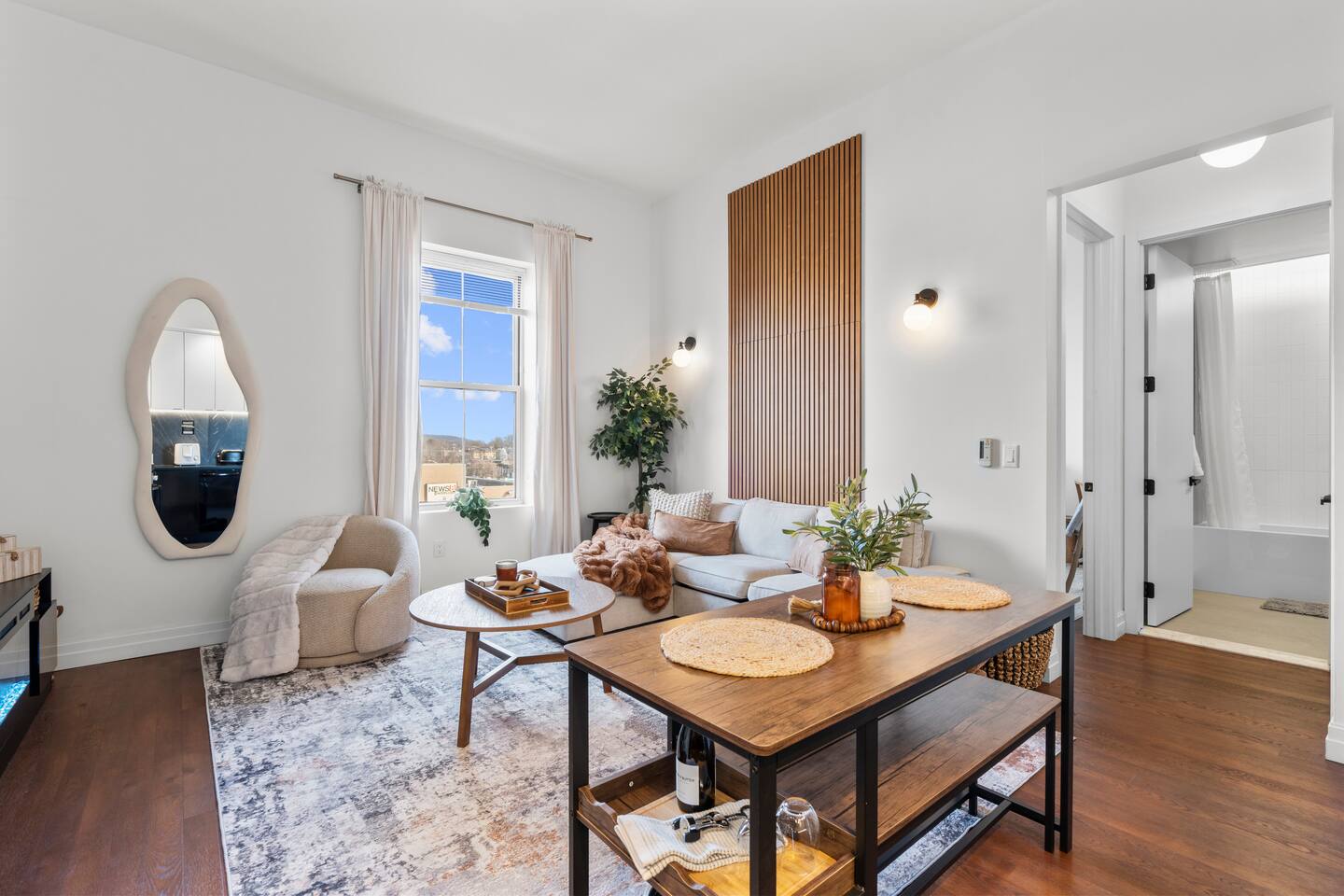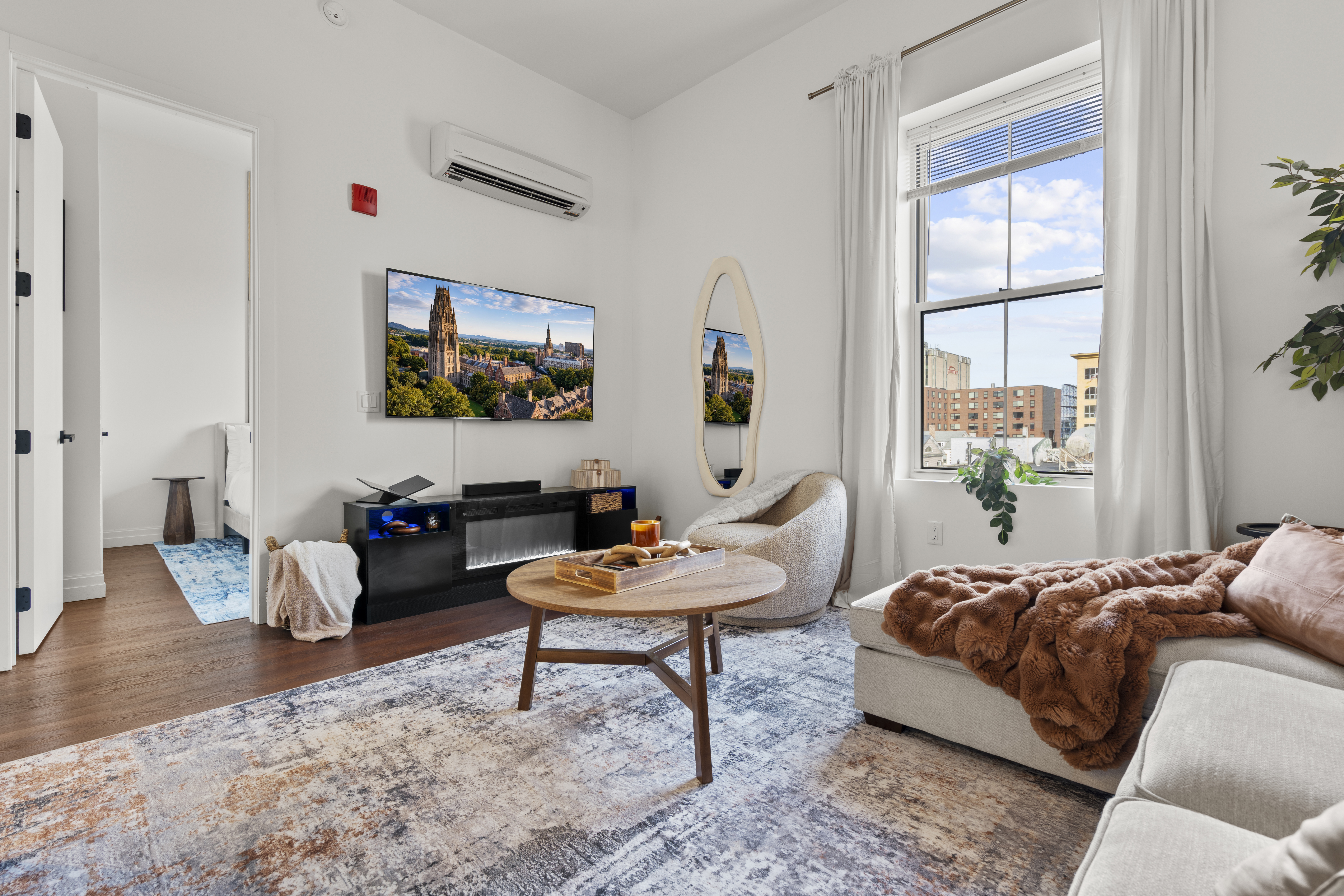 The Elm Haven is a stylish 2-bed, 2-bath renovated apartment in the heart of New Haven, steps from Yale University, Wooster Square & Union Stn. This modern space comfortably sleeps 5 and features a fully equipped kitchen, dedicated workspace, sauna and building gym. Perfect for families, professionals, or university visitors seeking comfort and convenience. Enjoy one complimentary parking space in this prime, walkable location — with the best of New Haven right outside your door!